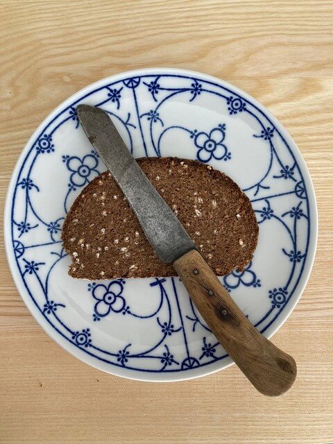 Beim jüngsten Durchsehen der Kisten mit allem, was beim Ausräumen des Elternhauses vor sechs Jahren nicht verteilt, aber auch nicht weggeschmissen werden konnte, tauchte das Messer jetzt wieder auf — was für eine schöne Überraschung! Ein „handgreiflicher“ Zeuge aus einer anderen Zeit und Welt. Ein Zeichen für das Teilen von Brot und Vertrauen als Lebensaufgabe und für das Weitergeben von Leben über Generationen hin, ob bei Hochzeitstafeln, Beerdigungskaffees oder unzähligen Alltagsmahlzeiten.